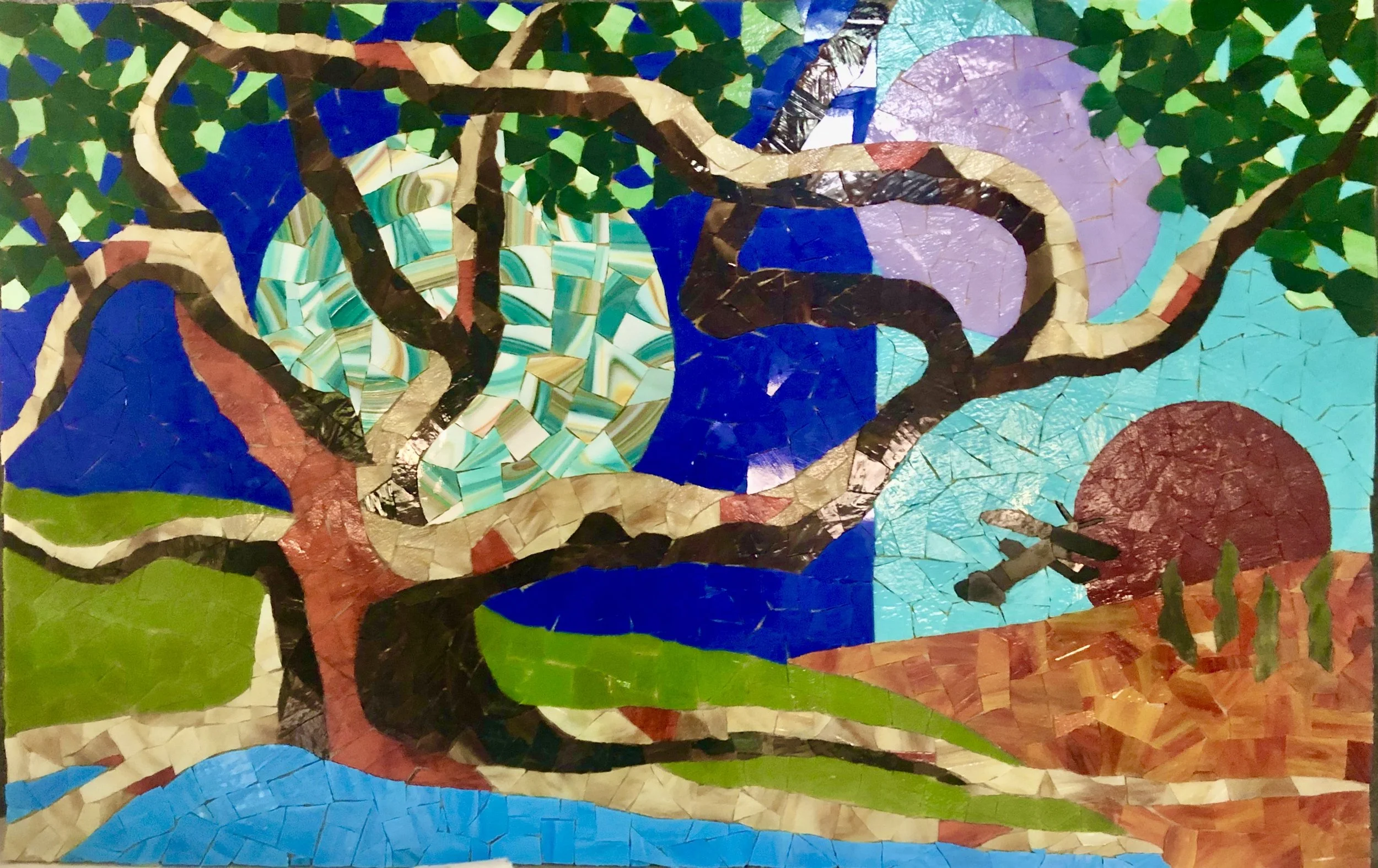 “We sat down together, looked through some images to see what I liked and Carol came up with a super cool mid-century modern looking mosaic with these cute little fat birds.”